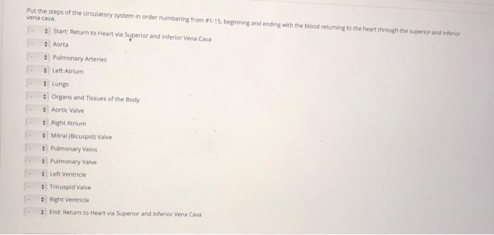 Steps of the circulatory system. In addition to transporting nutrients the circulatory system also picks up waste products generated by metabolic processes and delivers them to other organs for disposal. 1 body 2 inferiorsuperior vena cava 3 right atrium 4 tricuspid valve 5 right ventricle 6 pulmonary arteries 7 lu ngs 8 pulmonary veins 9 left atrium 10 mitral or bicuspid valve 11 left ventricle 12 aortic valve 13 aorta 14 body. For steps 1-11 Step 1.