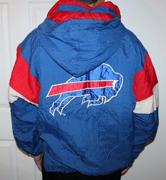 Bills Starter Full Zip Jacket. Buffalo Bills Starter Puffy Jacket NFL Large 14 Zip Black With Buffalo on Pouch. A premium athletic brand established in 1971 Starter pioneered the fusion of sports clothing with popular culture by forging partnerships with the major pro basketball football baseball hockey and college leagues.
