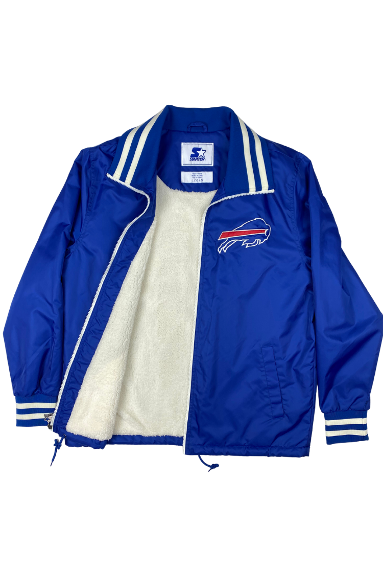 Buffalo Bills Starter jackets are back. Starter Gameday Bills Blue Satin Bomber Jacket. Buffalo Bills 14 Zip Pullover Jacket. Vintage Starter Buffalo Bills Satin Bomber Jacket Medium. The Starter Bills jacket is made from high-quality satin. Buffalo Bills Starter Puffy Jacket NFL Large 14 Zip Black With Buffalo on Pouch. Starter released a new Thursday Night Lights NFL jacket series that will have fans feeling nostalgic. It has a snap tab buttoned front closure. The Starter Bills Gameday Jacket is made from satin.